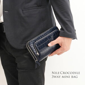 クロコダイル セカンドバッグ メンズ 3WAY 多機能 お財布 バッグ マット 加工 メタル ファスナー 全5色 本革 鰐革 斜めがけ ラウンドファスナー クラッチバッグ ギフト プレゼント