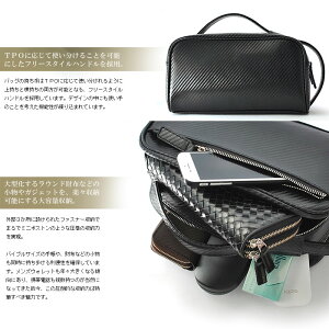 BEAMZ SQUARE カーボンレザー ダブルファスナー BOX型 セカンドバッグ メンズ ブラック 牛革 BS-2531BK あす楽対応