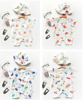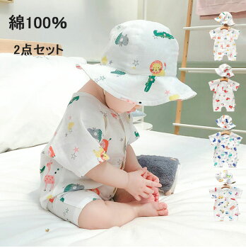 綿100% ダブルガーゼ 新生児服 乳児 2点セット 半袖 ジャンプスーツ ロンパース 男の子 女の子 パジャマ 子供 肌着 春夏向き 快適 前開き ベビー服 キッズ出産祝い 女児 空調服 新生児肌着 生地 66cm〜100cm 可愛い 出産準備 ルームウェア 帽子