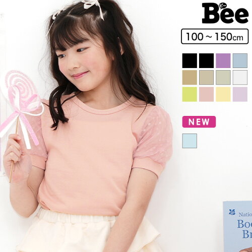 【タイムセール◆4/30 15:59まで】【21年夏新作】韓国子供服 韓国子ども服 キッズ 女の子 チュール袖 チュール パフスリーブ 無地 半袖 夏100 110 120 130 140 150 ◇チュール袖トップス◇