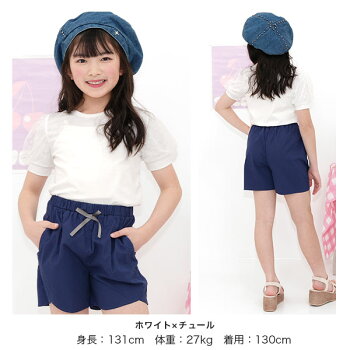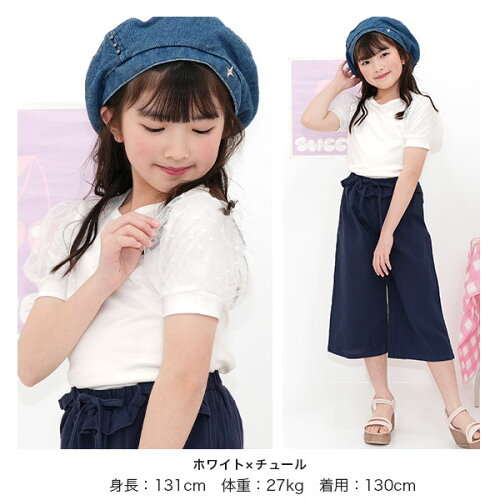 サイズ表 100cm 110cm 120cm 130cm 140cm 150cm 着丈 39 42 45 48 52 56 肩幅 24 25 27 28 30 32 身幅 29 31 33 35 37 39 袖丈 14 16 17 18 19 20 【 スタッフのお子さんに着せました! 】 ■Aさん 子どもの体格:122cm 21kg 普段のサイズ:120cm〜130cm 着用サイズ:120cm 着用したサイズ感:ちょうどいい 【 商品説明 】 ■素材:本体:ポリエステル60% 綿35% ポリウレタン5% チュール:ポリエステル100% ■厚み:薄手 ■生地感:柔らかく着心地のいい生地感 ■季節感:5月〜9月 【 ご注意 】 ・商品の色味に関しましては、モニターにより若干の誤差が出る場合があります。